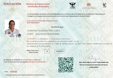 Institución con registro SEP en apego a los artículos 42 y 43 de la Ley Sobre el Ejercicio de las Profesiones del Estado de Morelos